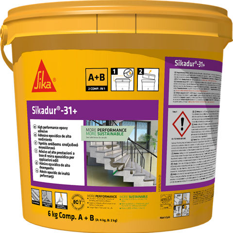 Sikadur®-31+ is a 2-part, low-VOC, moisture-tolerant epoxy structural adhesive which bonds to many construction materials. It is also used for structural concrete repairs, joint filling, and crack sealing. It can be used in both do-it-yourself (DIY) applications and professional applications.